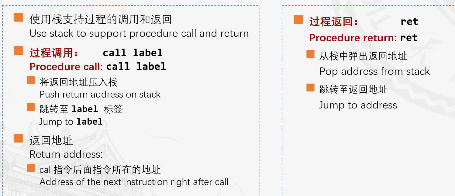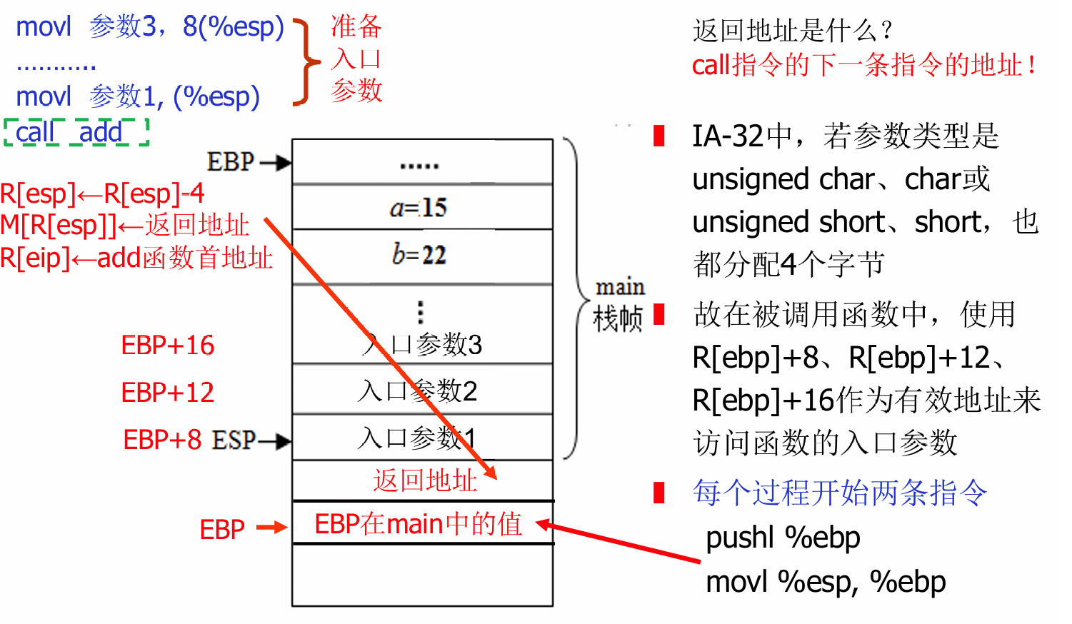 除此以外,还要想办法把参数传给调用的函数,以及把返回值从函数里面拿出来,这个过程大部分是用寄存器实现的。