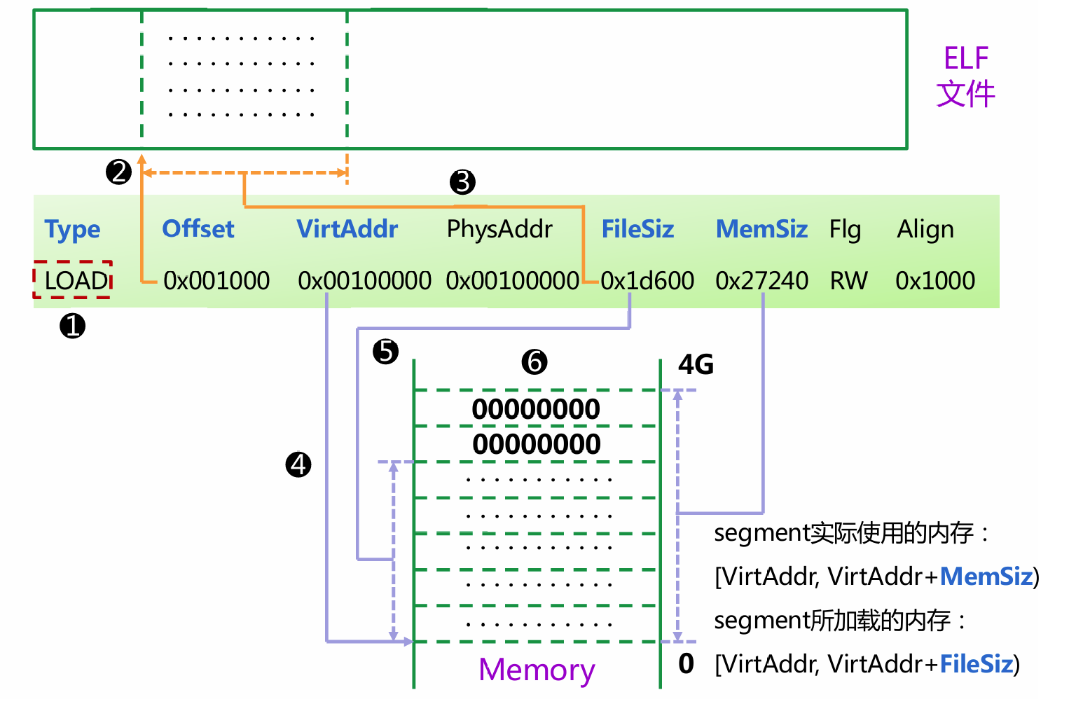 * [VirtAddr + FileSiz, VirtAddr + MemSiz)