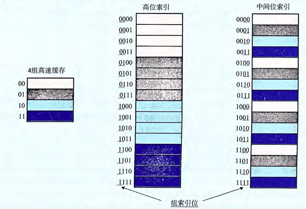 如果是中间位做索引,那么相邻的块就都存入cache,可以更快取数据
