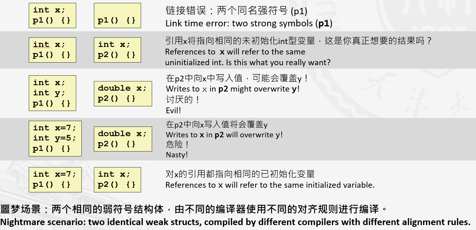 规则2:如果有一个强符号和多个弱符号同名 那么选择强符号