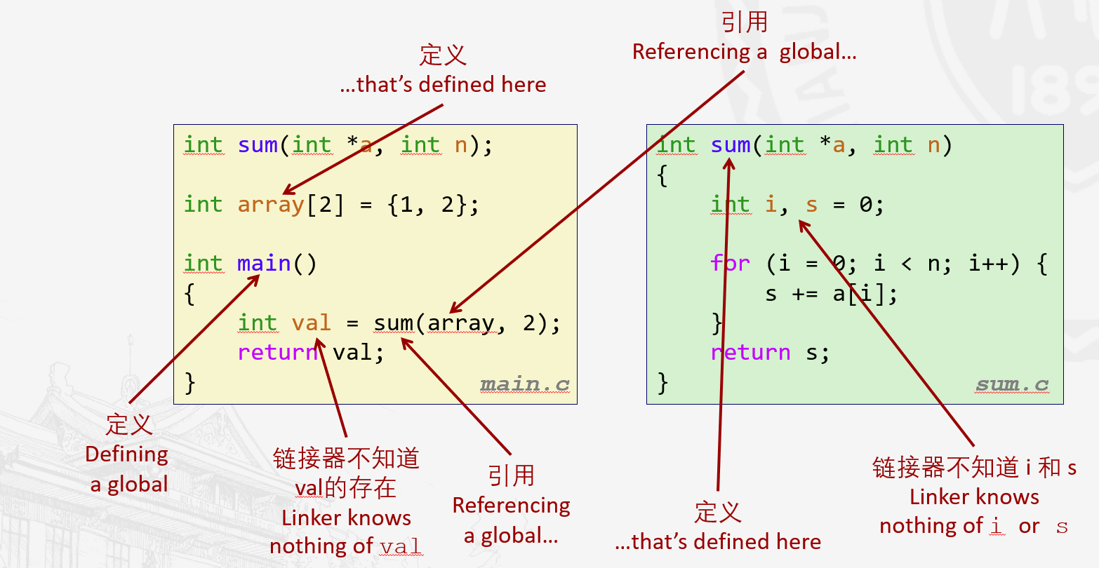 但是全局符号就非常麻烦了,当编译器遇到不是在当前模块定义的引用,就会生成一个symtab的条目,然后交给链接器。如果链接器没有在所有的模块中找到他,就会生成错误信息并终止。