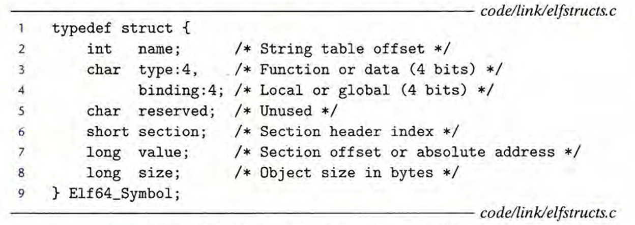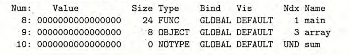 有三个特殊的伪节,它们在节头表中没有条目:ABS表示不被重定位,UNDEF表示未定义(在本模块引用,但在其他模块定义),COMMON表示未初始化,它的size是最小的大小。
