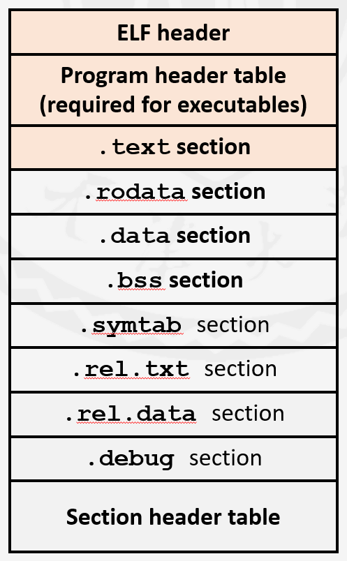 有三个特殊的伪节,它们在节头表中没有条目:ABS表示不被重定位,UNDEF表示未定义(在本模块引用,但在其他模块定义),COMMON表示未初始化,它的size是最小的大小。