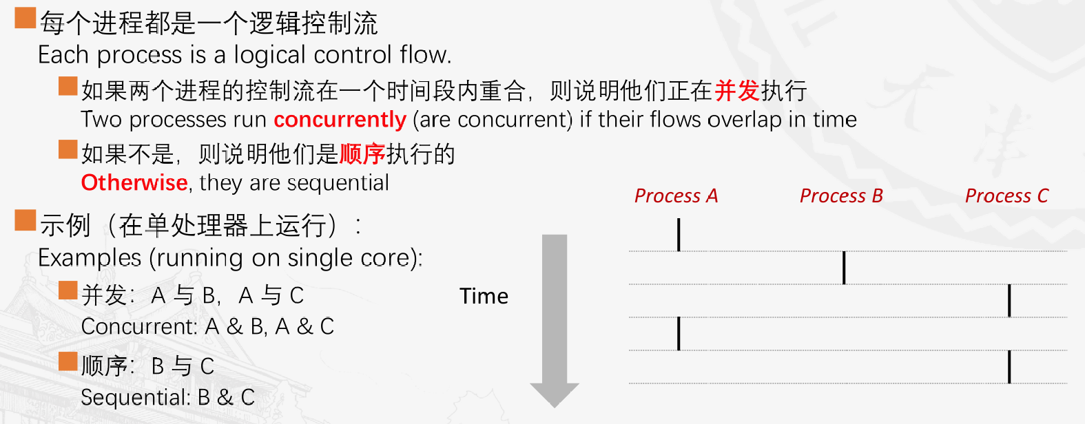 逻辑控制流:不管怎么上下文切换,我自己程序的指令和执行的顺序都不变,按我的程序的逻辑走。