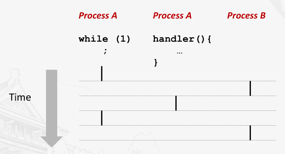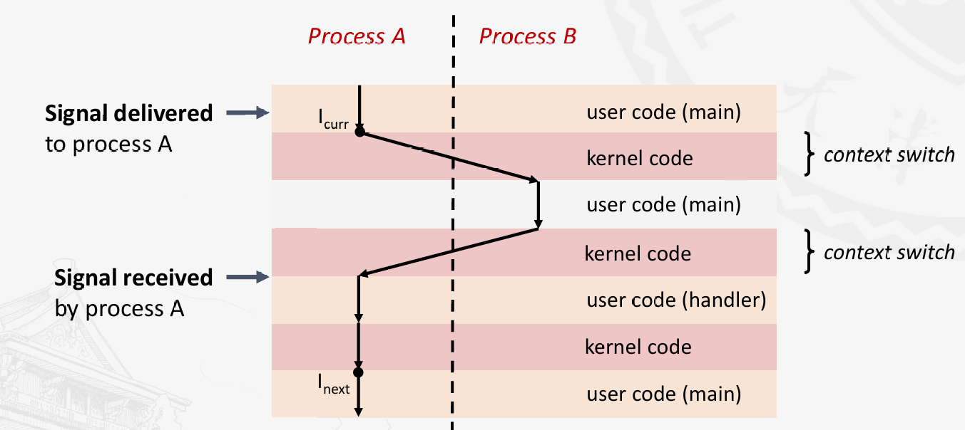 收到信号之后,先运行信号处理,再返回。