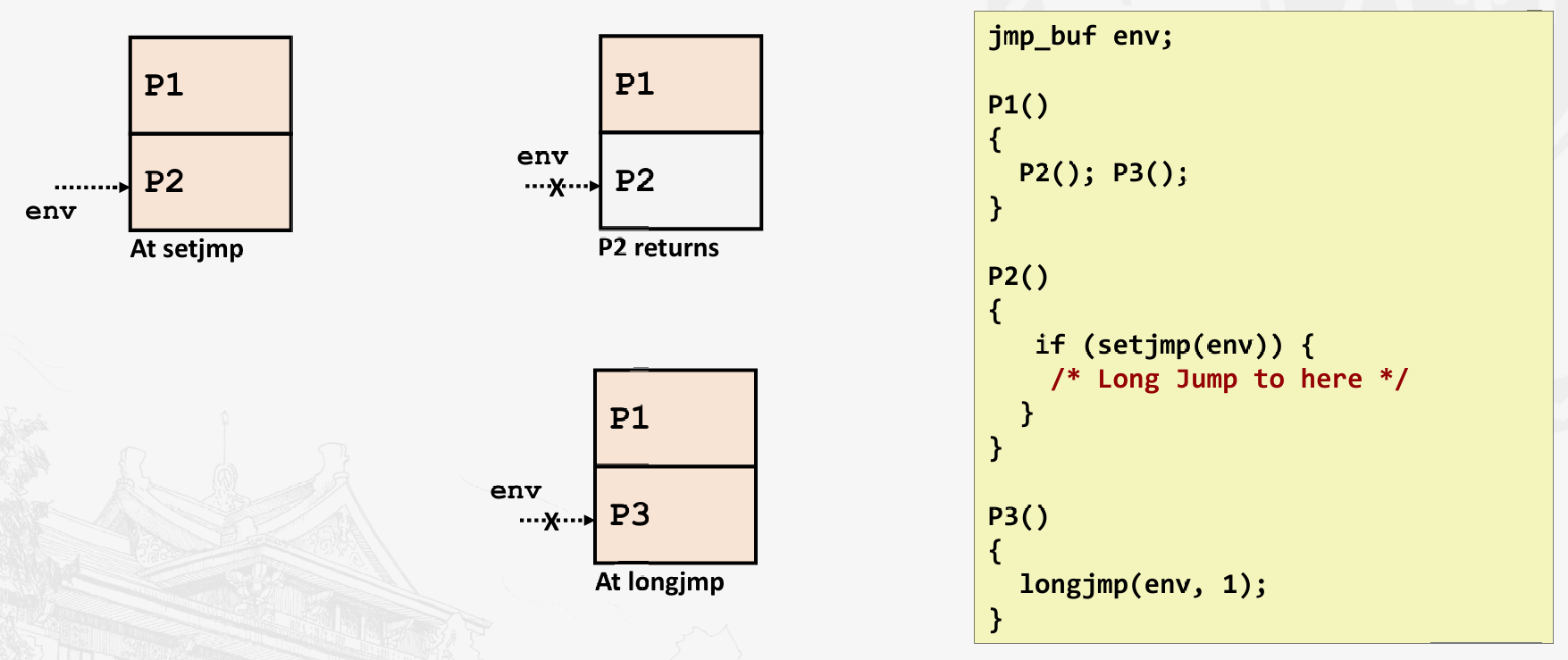 longjmp(buf, 2);