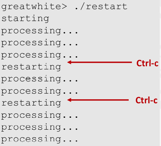 Sio_puts("restarting\n");