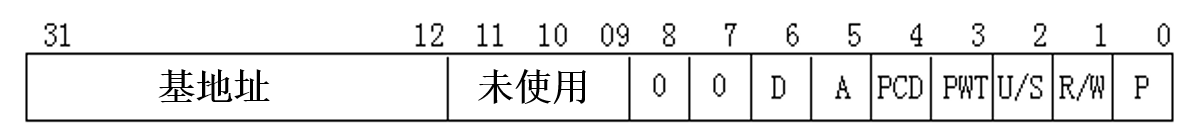 D:修改位(脏位dirty bit)。页目录项中无意义,只在页表项中有意义。初始化时OS将其清0,由MMU在进行写操作的地址转换时将该位置1。