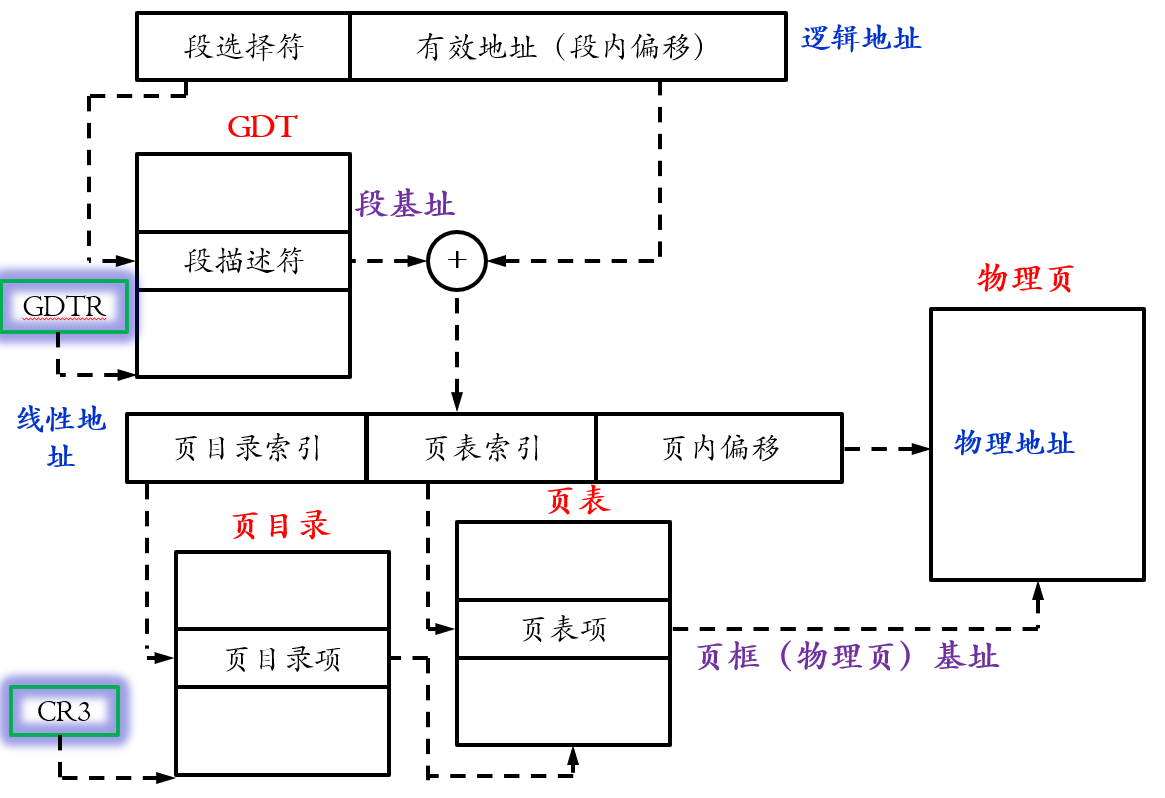 GDTR中保存的首地址是线性地址,为什么不是逻辑地址?(因为要翻译成线性地址,否则就循环了)