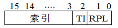 TI=0,选择全局描述符表(GDT),TI=1,选择局部描述符表(LDT)