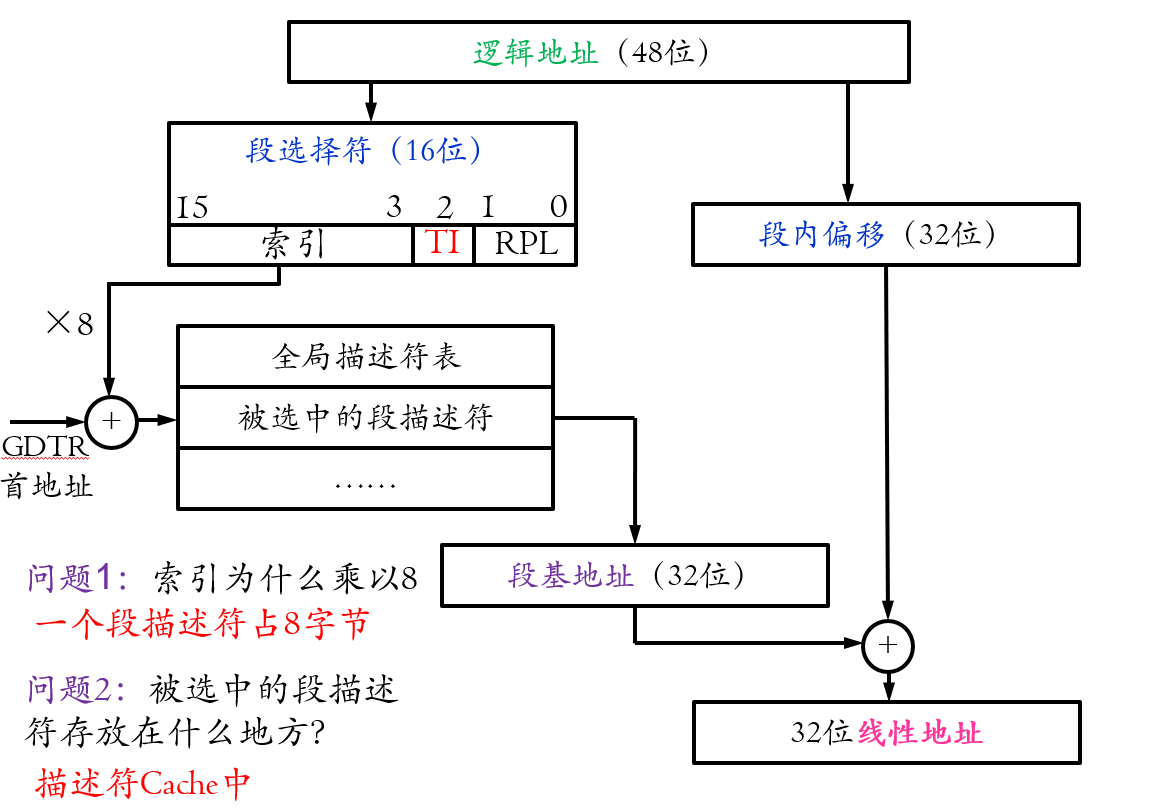 GDTR中保存的首地址是线性地址,为什么不是逻辑地址?(因为要翻译成线性地址,否则就循环了)