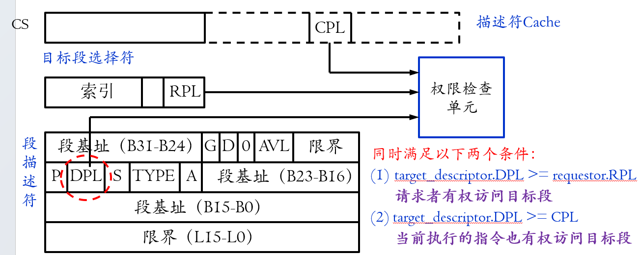 2.如果你想从别人的账户取钱,虽然工作人员有权访问别人的账户(target_descriptor.DPL >= CPL),但你却没有权利访问(target_descriptor.DPL < requestor.RPL),业务办理失败