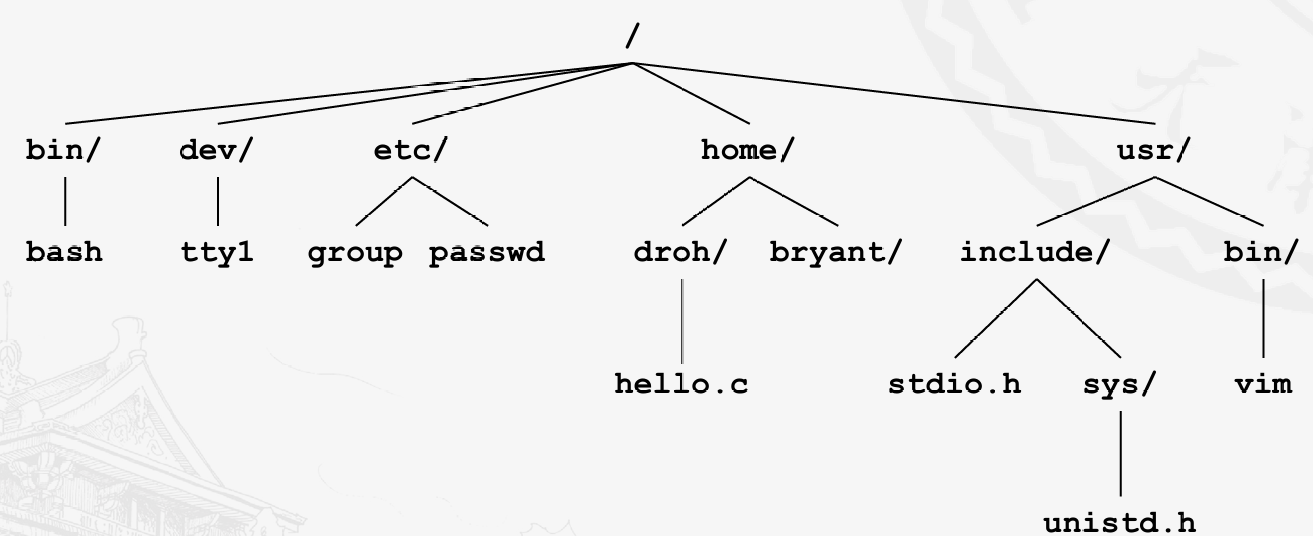 所有文件都组织成一个以根目录为锚点的层次结构,根目录名为/(斜杠)