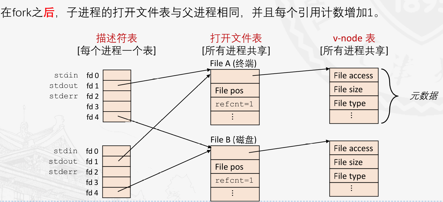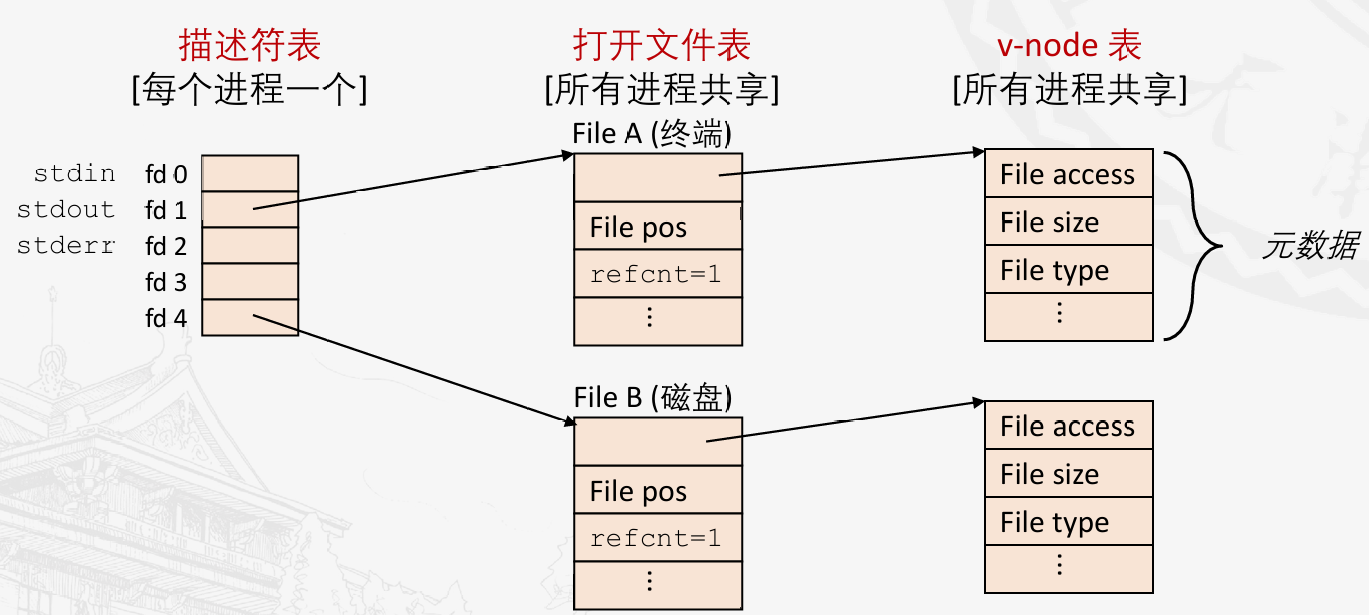 由Linux shell创建的每个进程在初始状态时与终端关联三个打开文件: