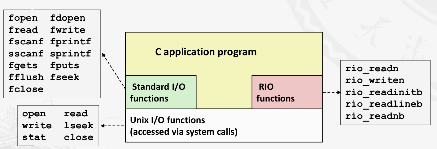 我们将学到,Linux的三套IO函数,Unix I/O(系统级IO),RIO包,标准C库IO