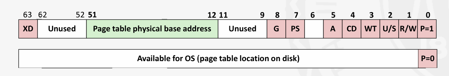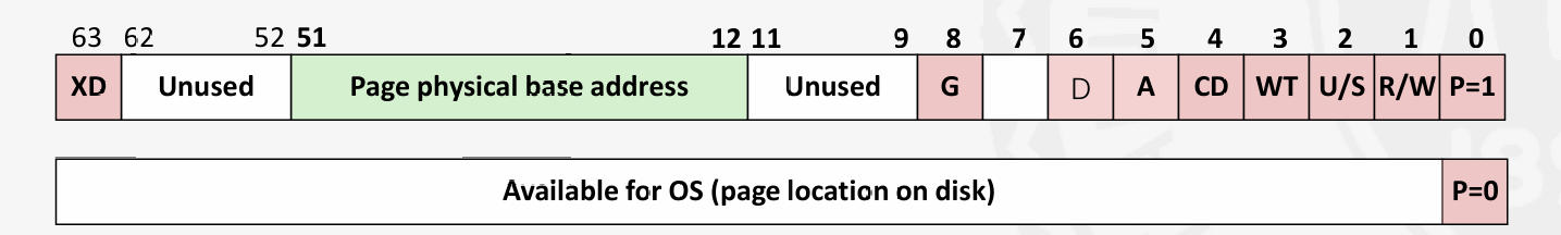 n 位地址字段:表示物理页号或磁盘地址,如果为NULL,表示未分配