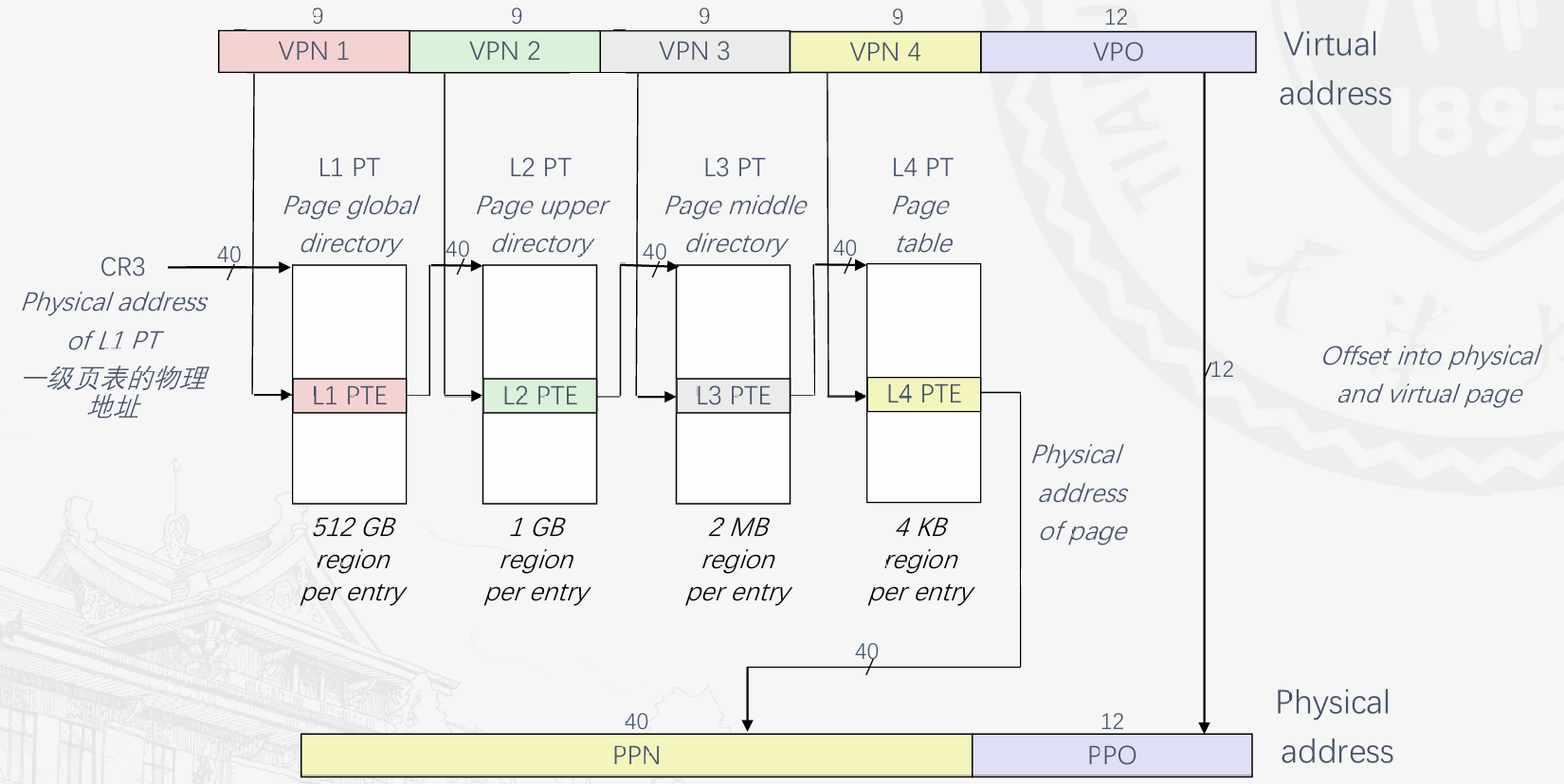 我们在cache那里已经学过了,全相联的缓存只有一个set,因此组索引位为0。因而每个页都可以被映射到任意的位置。