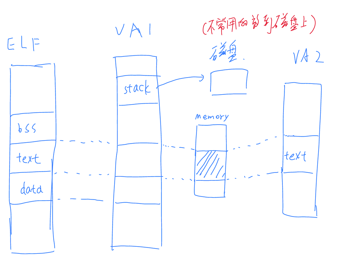 我们只要考虑虚拟地址空间中是这样的,而不必要考虑实际的物理地址。