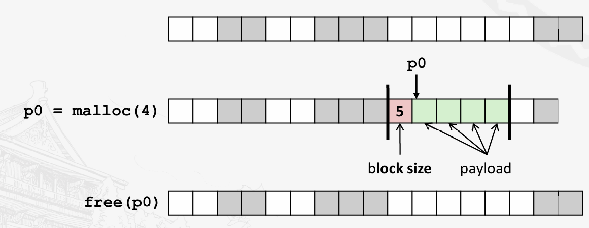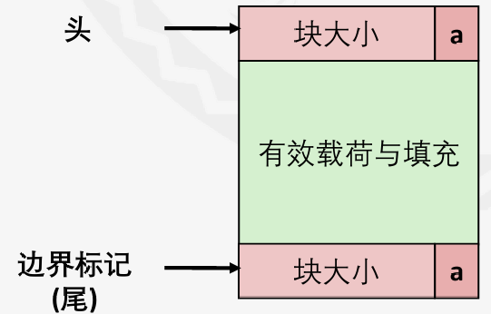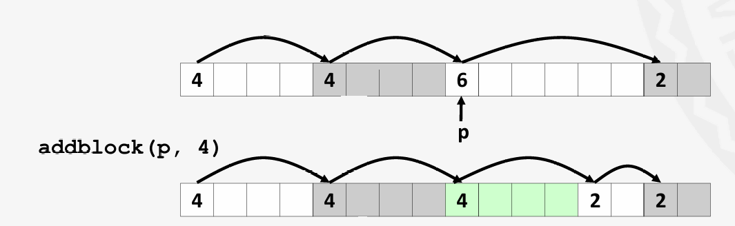 幸运的是,我们只跟踪空闲块,所以我们可以使用有效载荷区域来存储指针