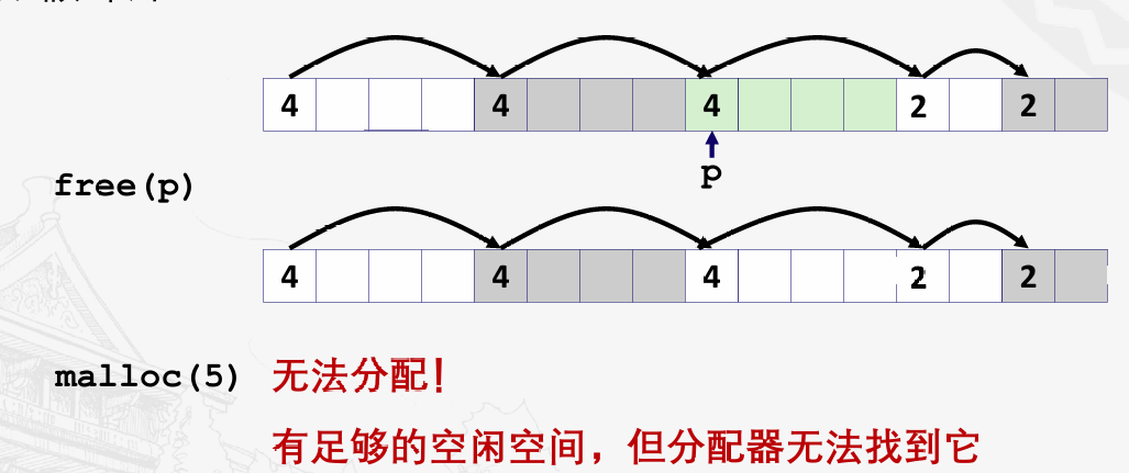 这是否增加了内部碎片?没有,指针只在空闲块中存在