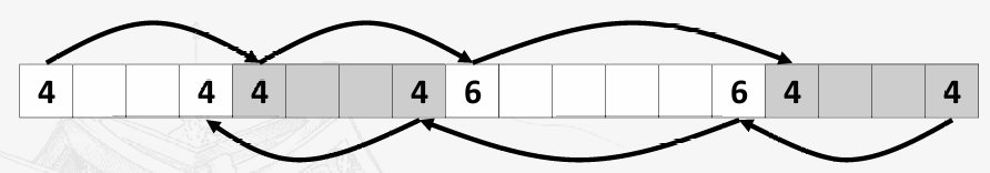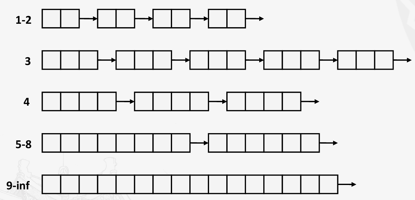给定一个空闲链表的数组,每个链表对应某个大小类别