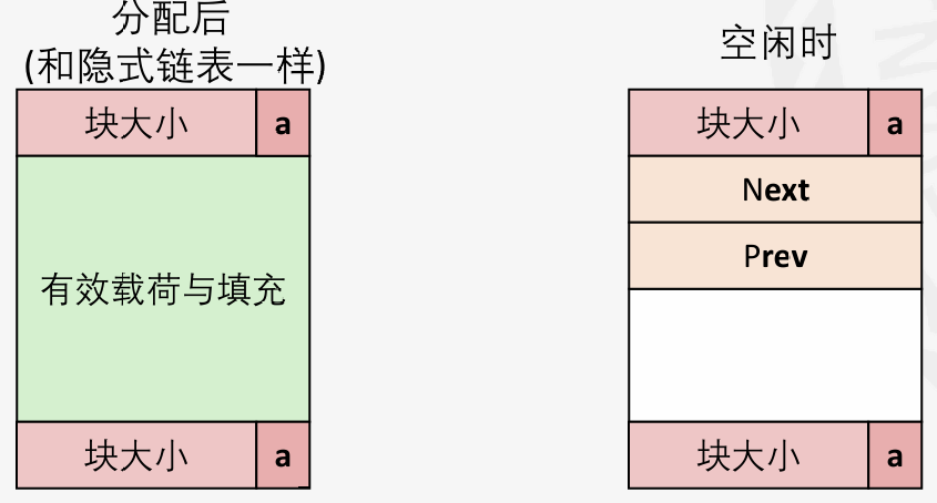 只有空闲块才需要统一管理,已分配的块管不到,使用显式空闲链表提高效率