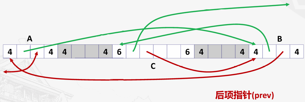 “下一个”空闲块可能位于任何位置,因此,需要存储前向/后向指针,而不仅仅是大小