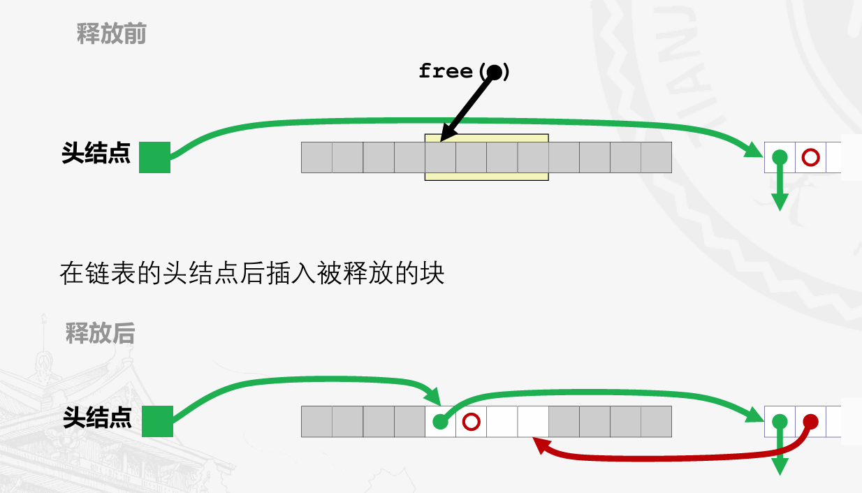 后进先出(LIFO):将释放的块插入到空闲列表的开头