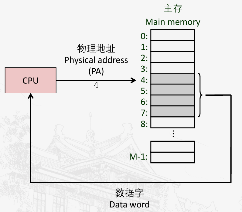 物理地址空间(physical address space),对应于系统中物理内存的 M个字节: