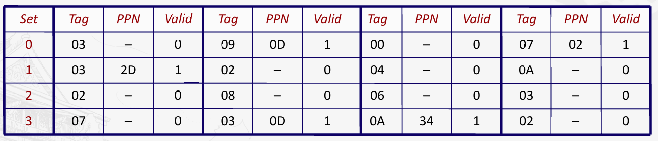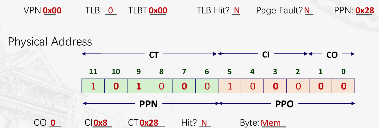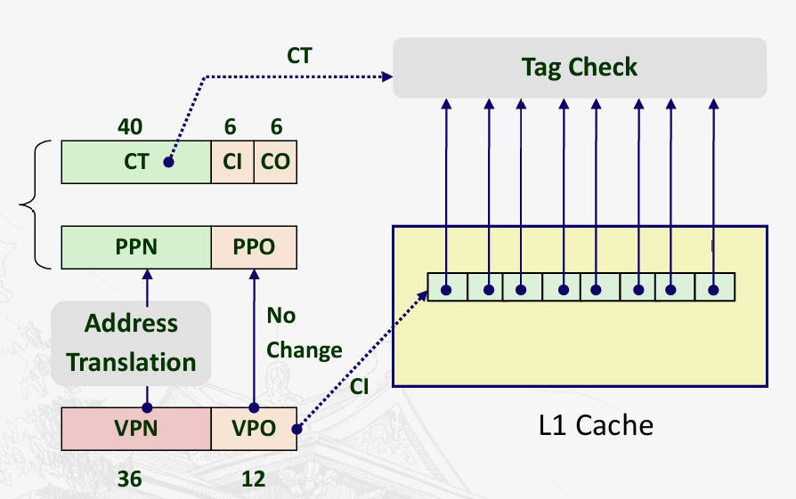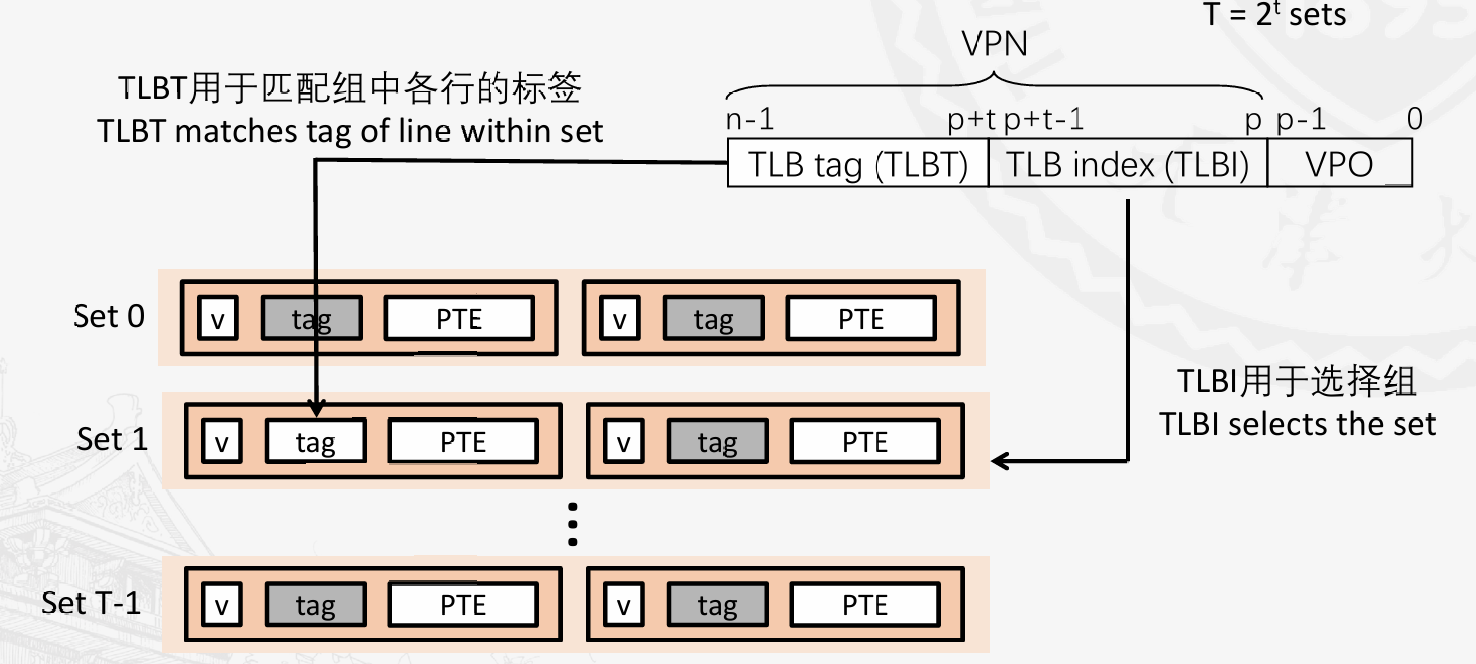 我们在cache那里已经学过了,全相联的缓存只有一个set,因此组索引位为0。因而每个页都可以被映射到任意的位置。