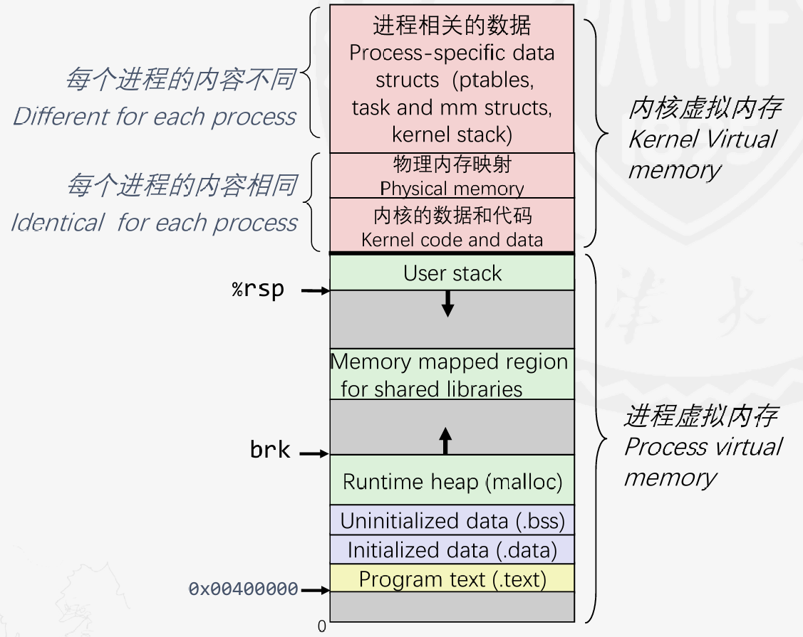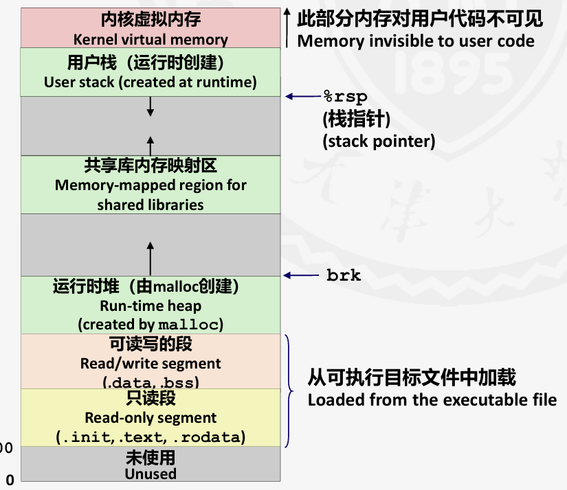 我们只要考虑虚拟地址空间中是这样的,而不必要考虑实际的物理地址。