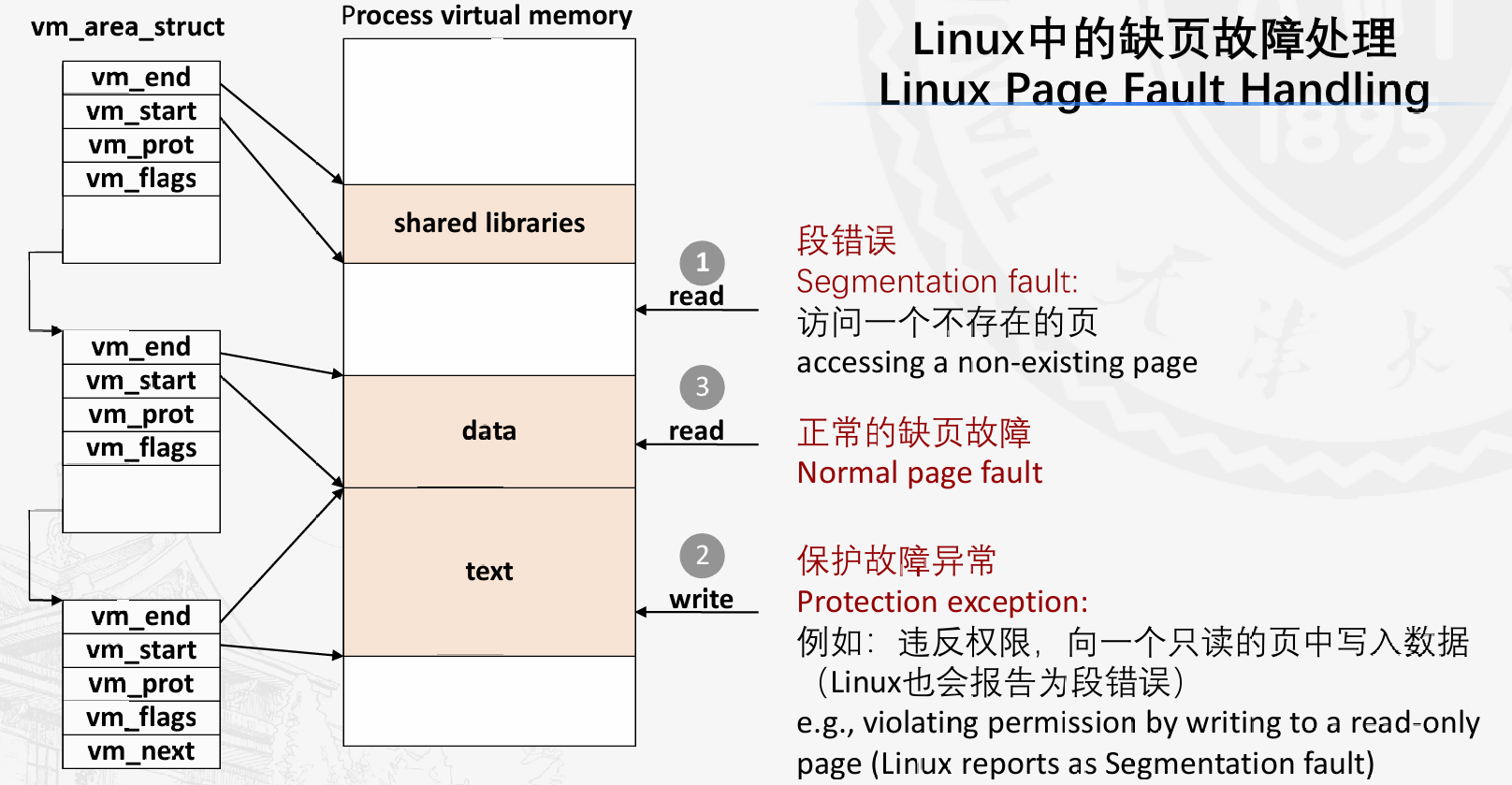 如果引用的地址既不在磁盘,也不在内存,即对应表项的地址为NULL,同样引发缺页异常,不过此时,操作系统给引发异常的进程发送SIGSEV,默认行为是打印段错误,然后退出。当然,你也可以注册信号处理函数,忽略掉这个错误。