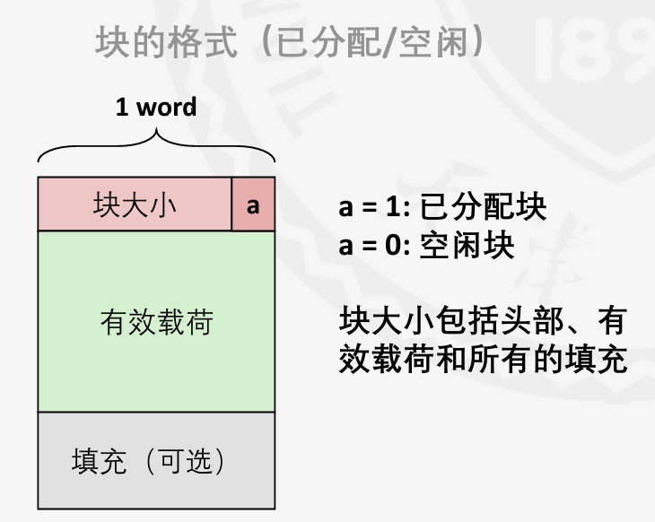 存放显式链接的指针需要额外的空间(每个块需要额外的2个字)