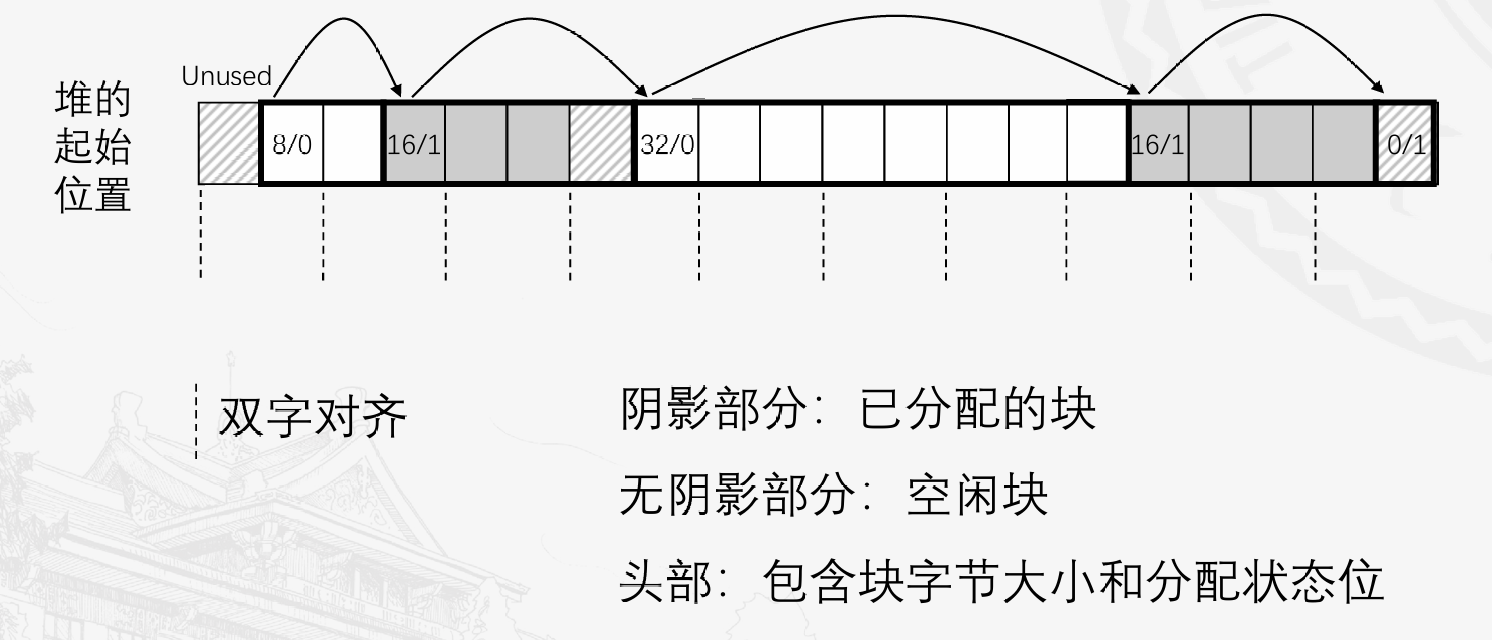 只有空闲块才需要统一管理,已分配的块管不到,使用显式空闲链表提高效率